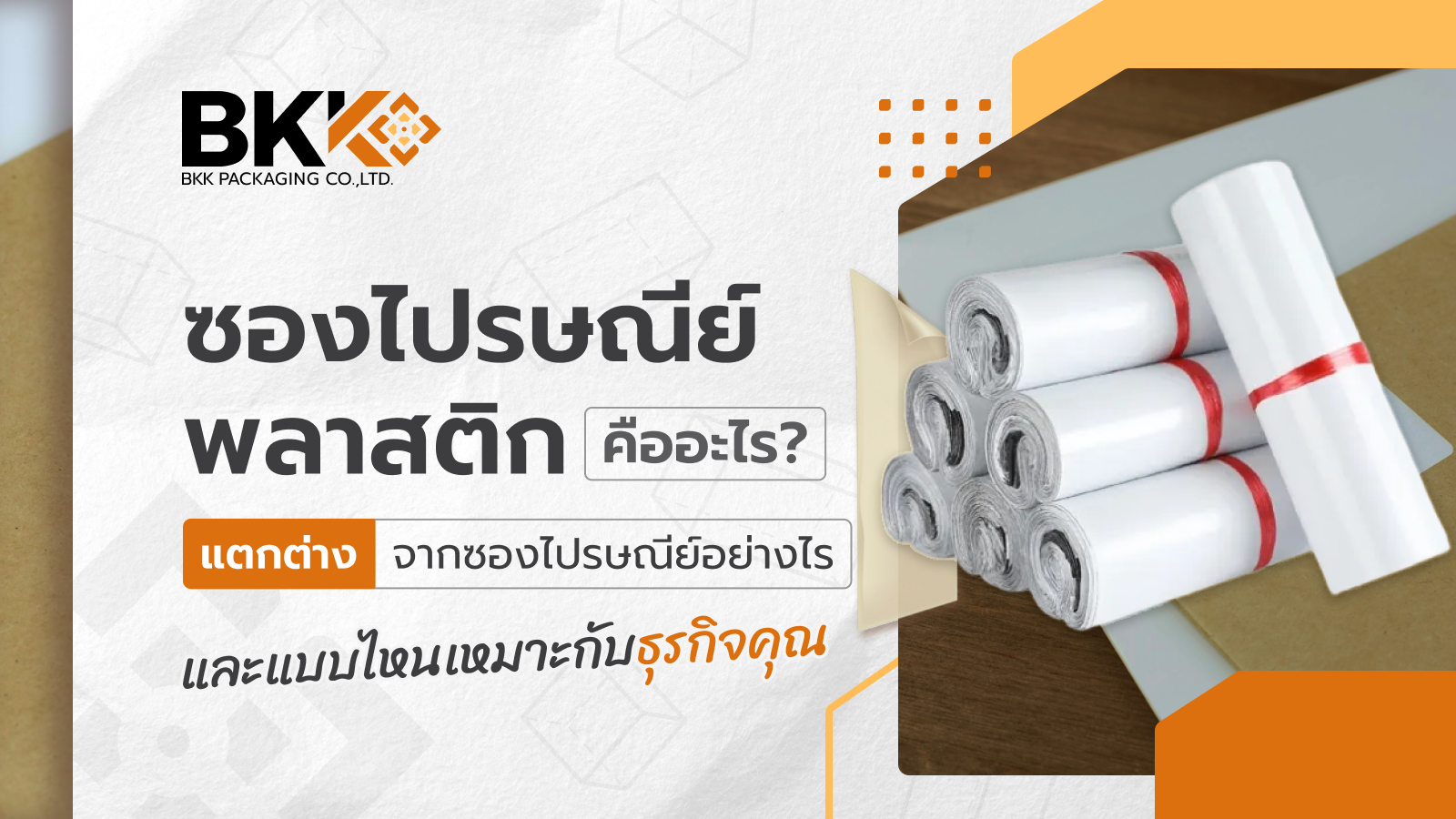 หากคุณกำลังมองหาซองไปรษณีย์พลาสติกคุณภาพหรืออุปกรณ์แพ็คสินค้าอื่นๆ สำหรับธุรกิจออนไลน์ของคุณ บริษัท บีเคเค แพคเกจจิ้ง จำกัด พร้อมเป็นพาร์ทเนอร์ที่ช่วยเพิ่มประสิทธิภาพการแพ็คสินค้าของคุณ โดยสินค้าของเราทุกชิ้นผ่านการคัดสรรและตรวจสอบคุณภาพ หากมีปัญหาเรื่องสินค้า ทีมงานพร้อมดูแลแก้ไขอย่างรวดเร็ว สามารถอ่านข้อมูลเพิ่มเติมได้ที่ >> BKK Packaging