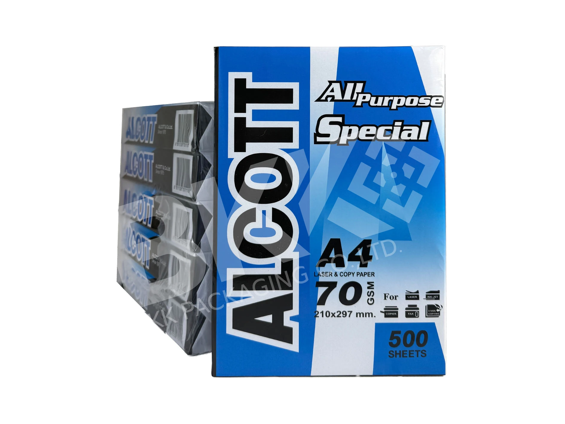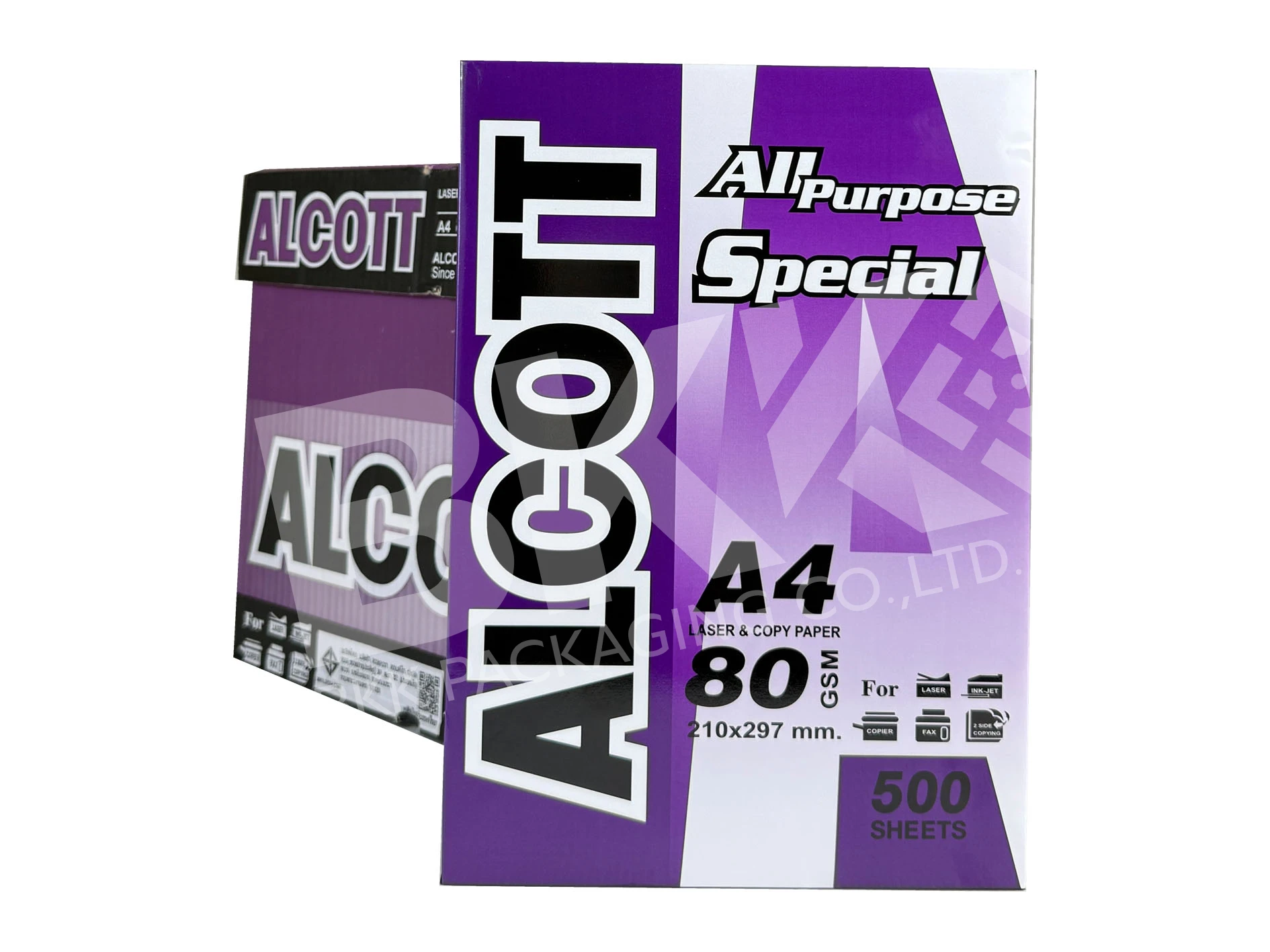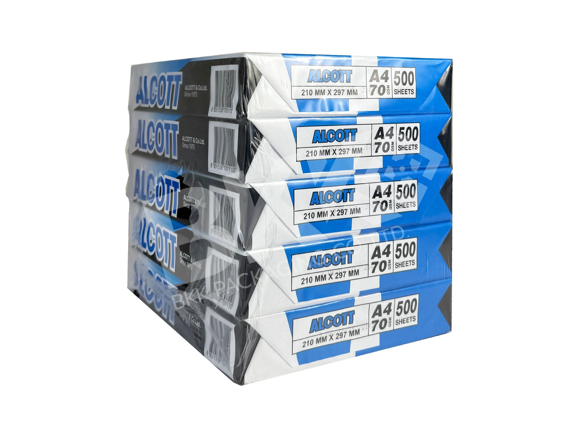 กระดาษ A4 ALCOTT ยกระดับภาพลักษณ์งานเอกสารตั้งแต่แรกจับด้วย  โทนขาวเนียน เนื้อกระดาษเรียบเสมอ ทำให้เส้นตัวอักษร/กราฟิกคมชัดสม่ำเสมอ พิมพ์ลื่น ลดการสะดุดและปัญหากระดาษติดเครื่อง รองรับทั้ง Inkjet, Laser และเครื่องถ่ายเอกสาร ใช้งานครอบคลุมตั้งแต่ใบปะหน้าพัสดุ ใบแพ็ค ใบกำกับภาษี แบบฟอร์มคลัง จนถึงคู่มือแนบสินค้า จัดส่งรวดเร็ว และรองรับ จำหน่ายปลีก–ส่ง / ขายปลีกส่ง เพื่อความเป๊ะและความน่าเชื่อถือในทุกชุดเอกสาร